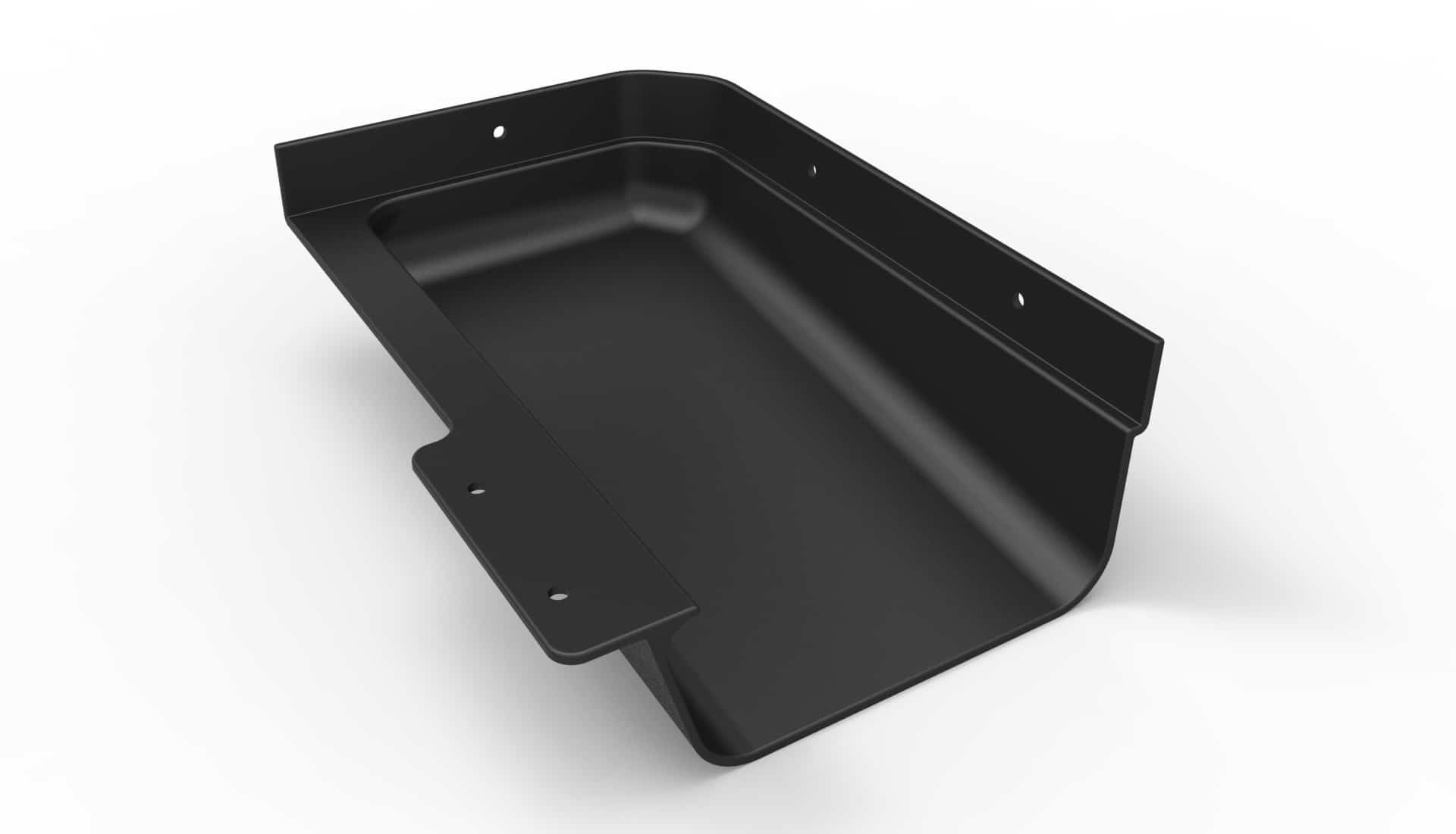 Valley Kicker™ is designed to sit inside and attach to the front lip of a 5” gutter with the ramped mouth of the product pointing toward the Right downspout. It can be installed in the inside corner of the gutter system or in the straight run directly under the roof’s valley.